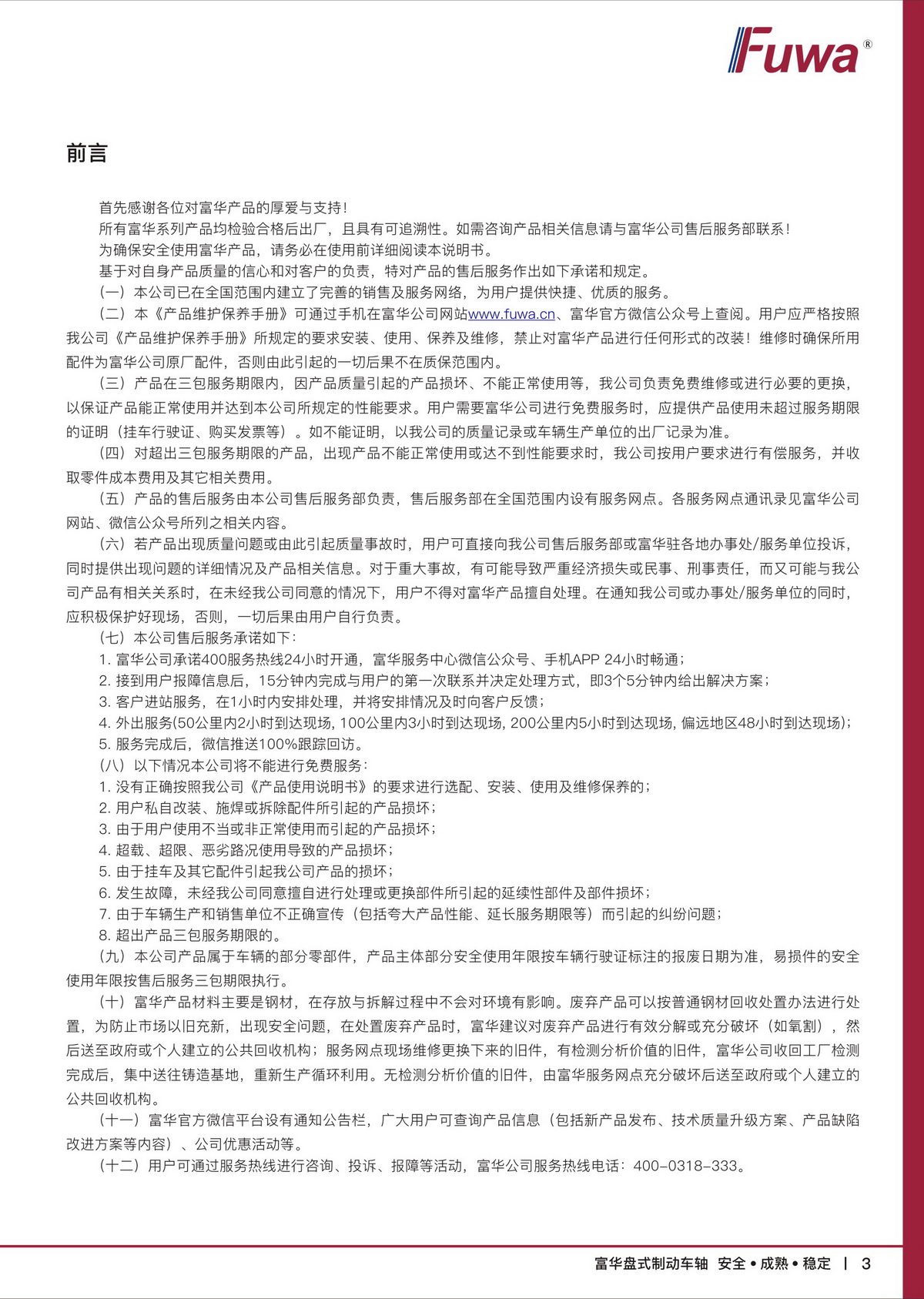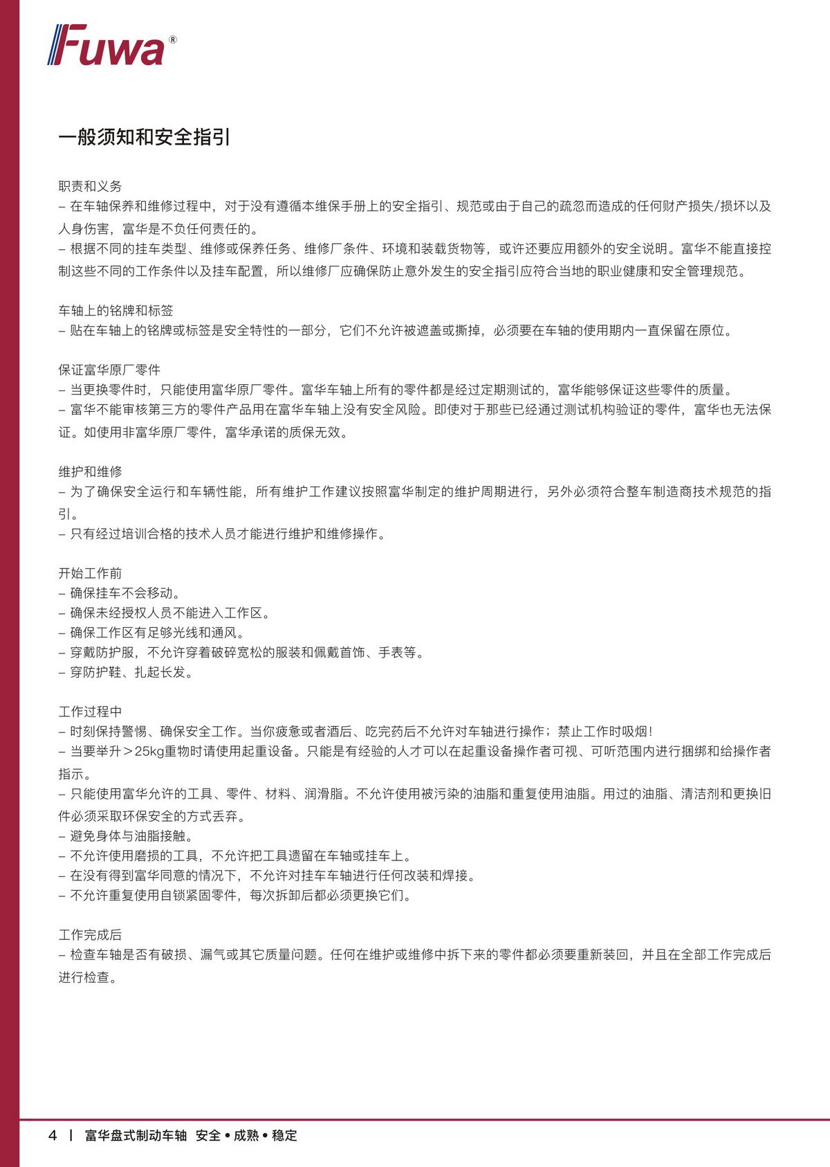 富华盘式制动车轴【产品维护保养手册】