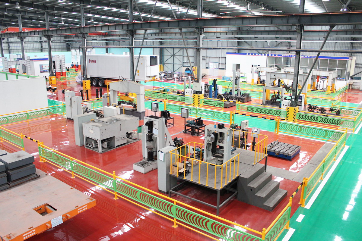 富华集团质量检测中心总占地面积达5500平方米,分为三大区域,分别是检测区、试验区以及最新建成的“汽车底盘零部件总成结构性能综合试验平台”。检测区共设置12个科室,主要承担精密测量、理化检测分析和计量检定等60多项检测检验工作。试验区(车轴试验部)以可靠性试验为主,配备20多组自主研发的试验设备,目前可完成30多项产品功能性试验。